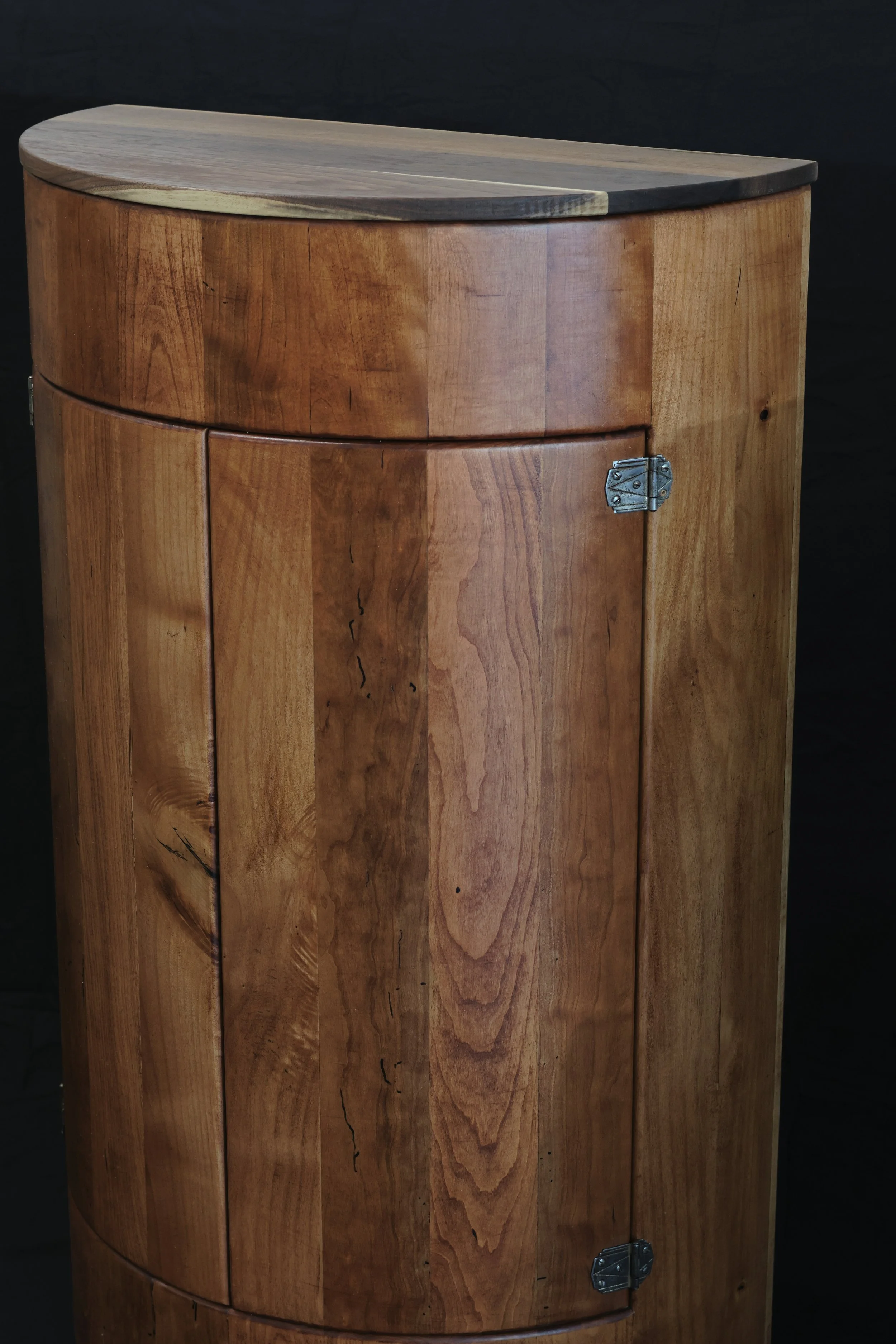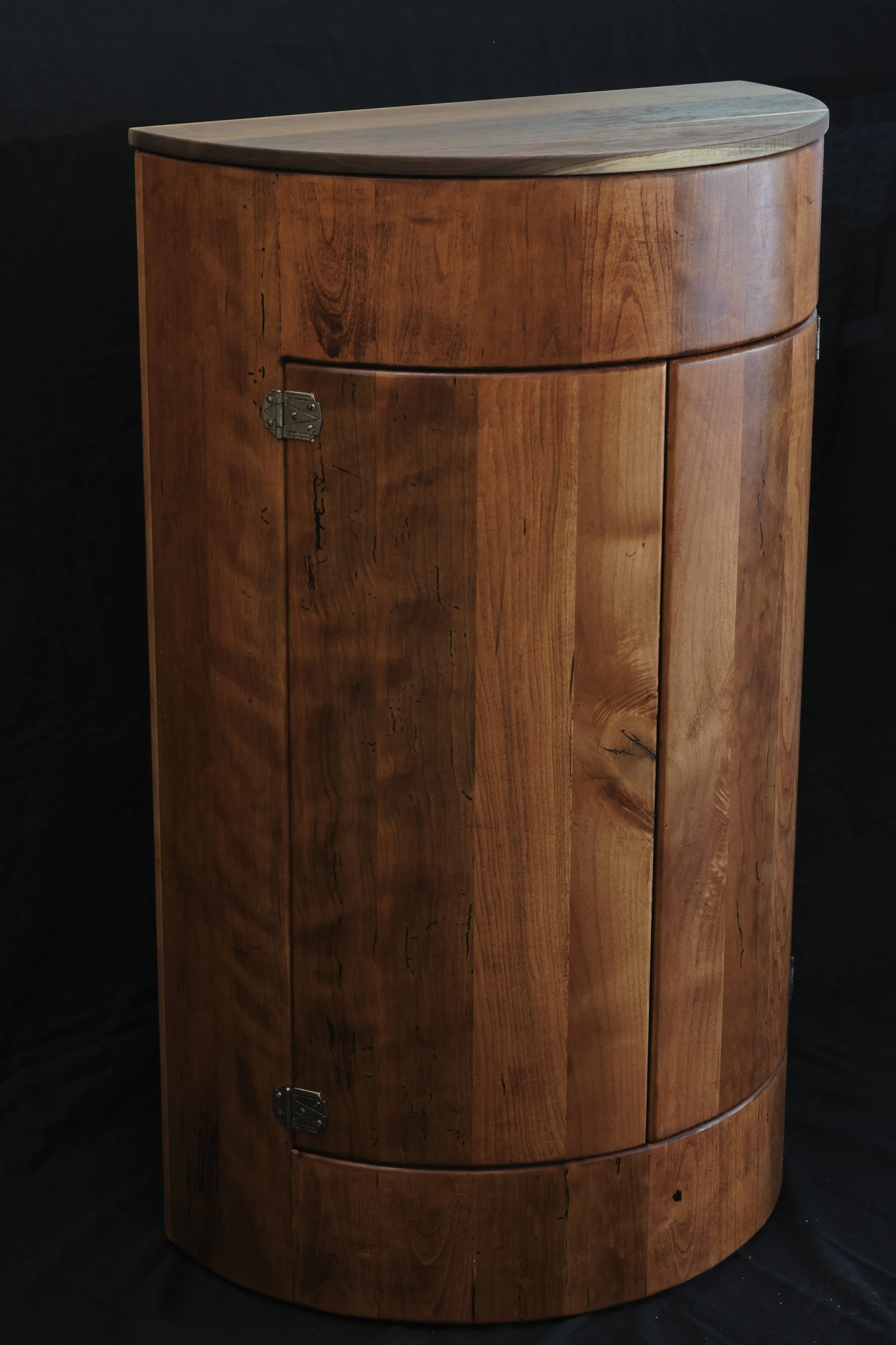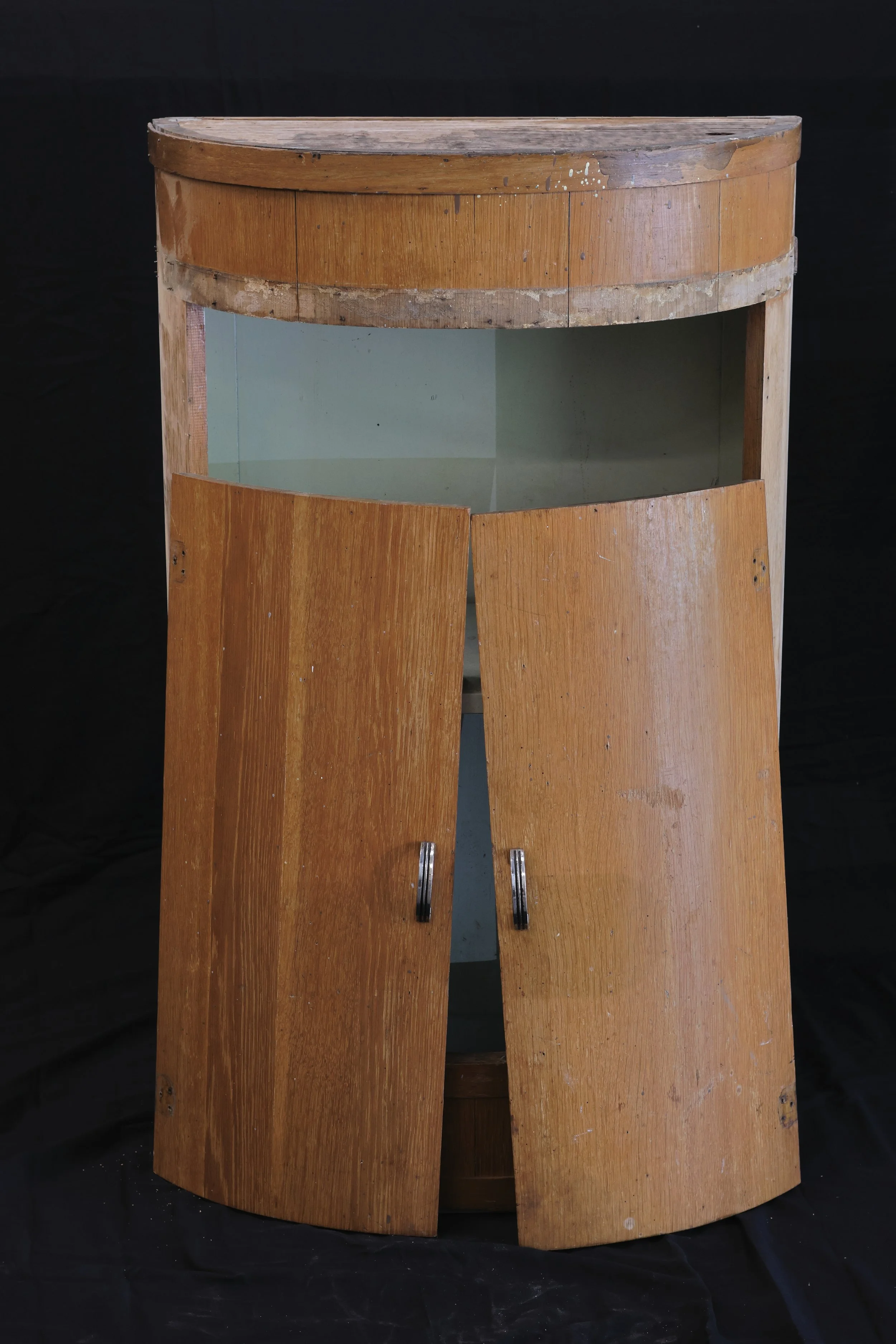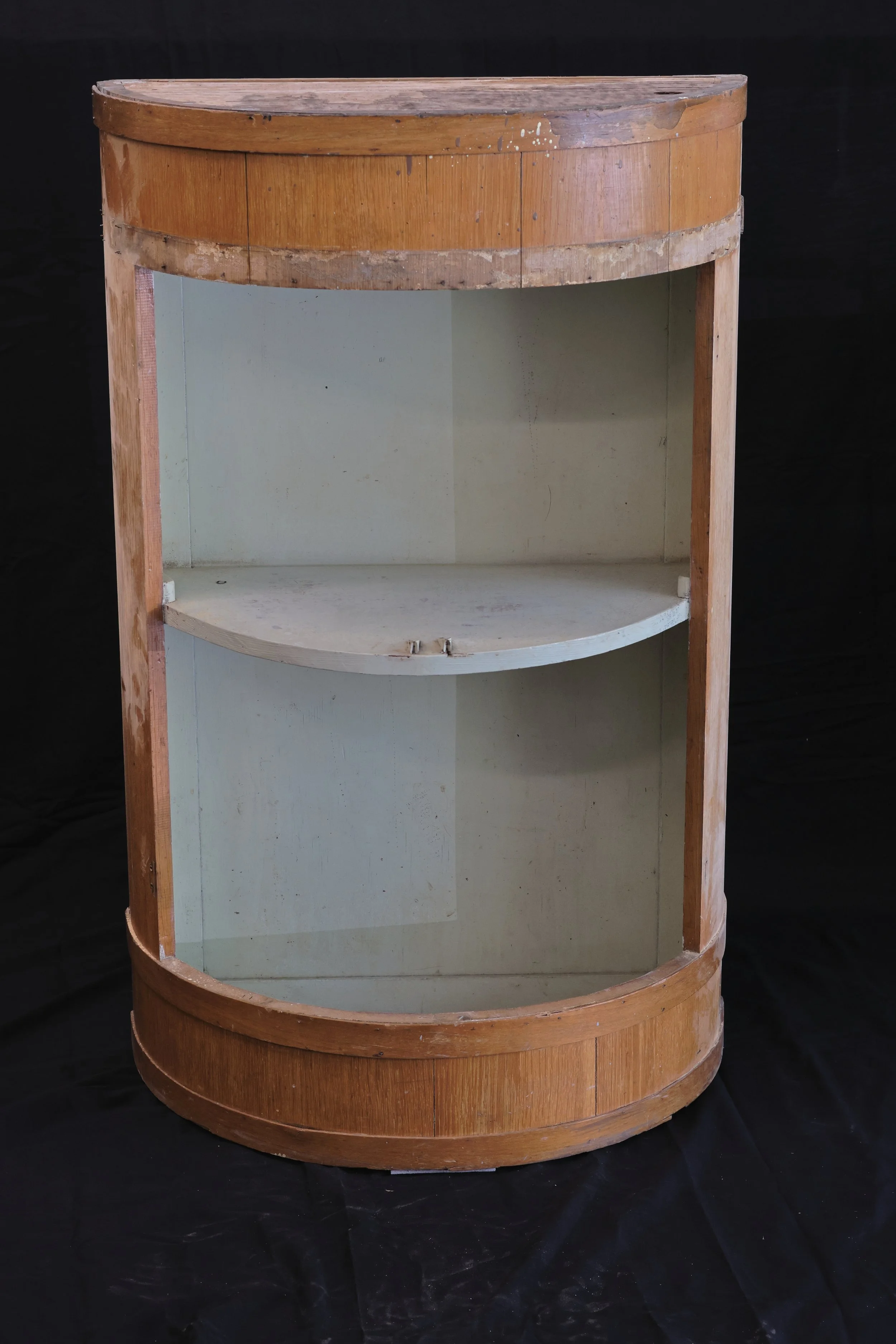 An antique half round cabinet brought into the shop for repairs.