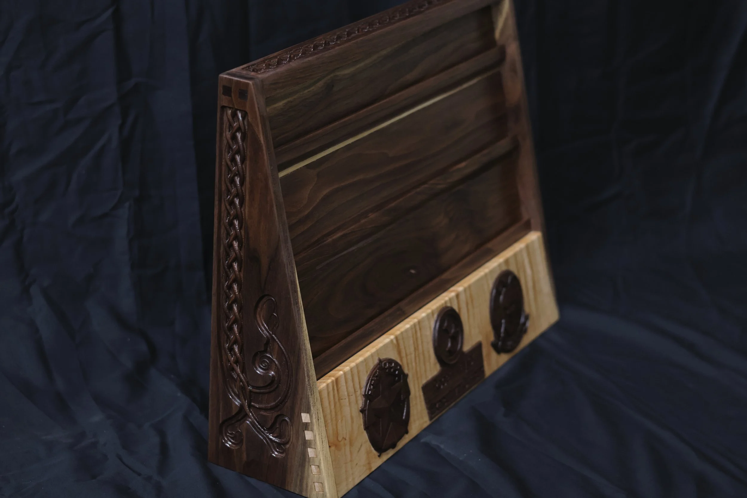 An ornate viking sea chest! Made with black walnut, western maple and cherry.